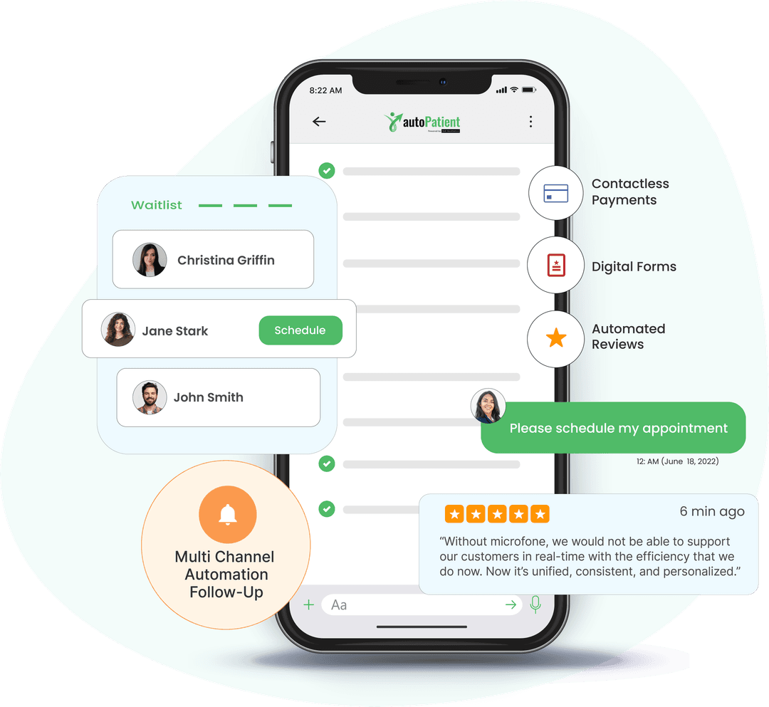 autoPatient frees up your staff’s time by eliminating time-consuming tasks and manual work. Create a happier and more productive staff, and watch your practice handle more patients while increasing patient satisfaction and eliminating burnout.