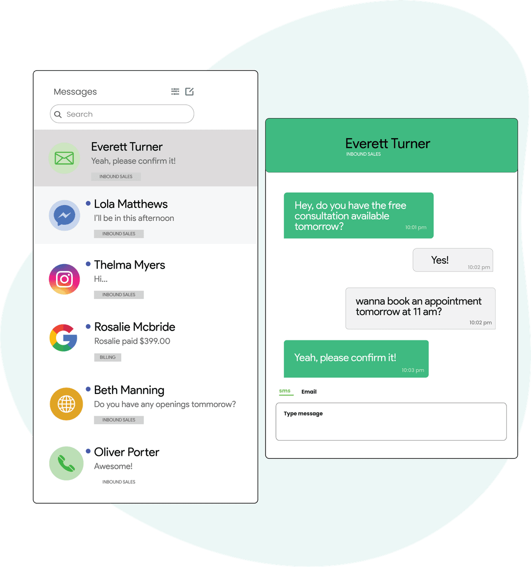 Enough with logging into 10 different platforms to answer patient requests and messages. No more catching up on unanswered emails from different accounts, slow replies to SMS messages, WhatsApp conversations from your phone, having a separate social media team to handle Instagram and Facebook messages, and logging into Google My Business to check messages.